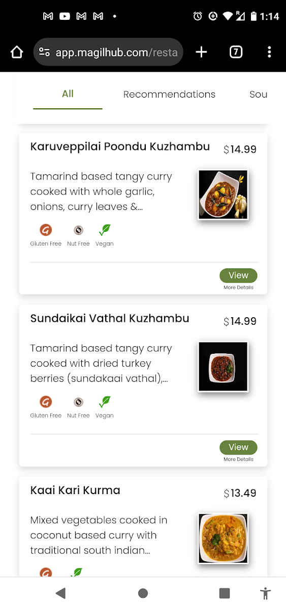 South Indian street delicacy made with minced layered flat bread sauteed with vegetables, green chilies and house spices - served with vegetable kurma and raitha.